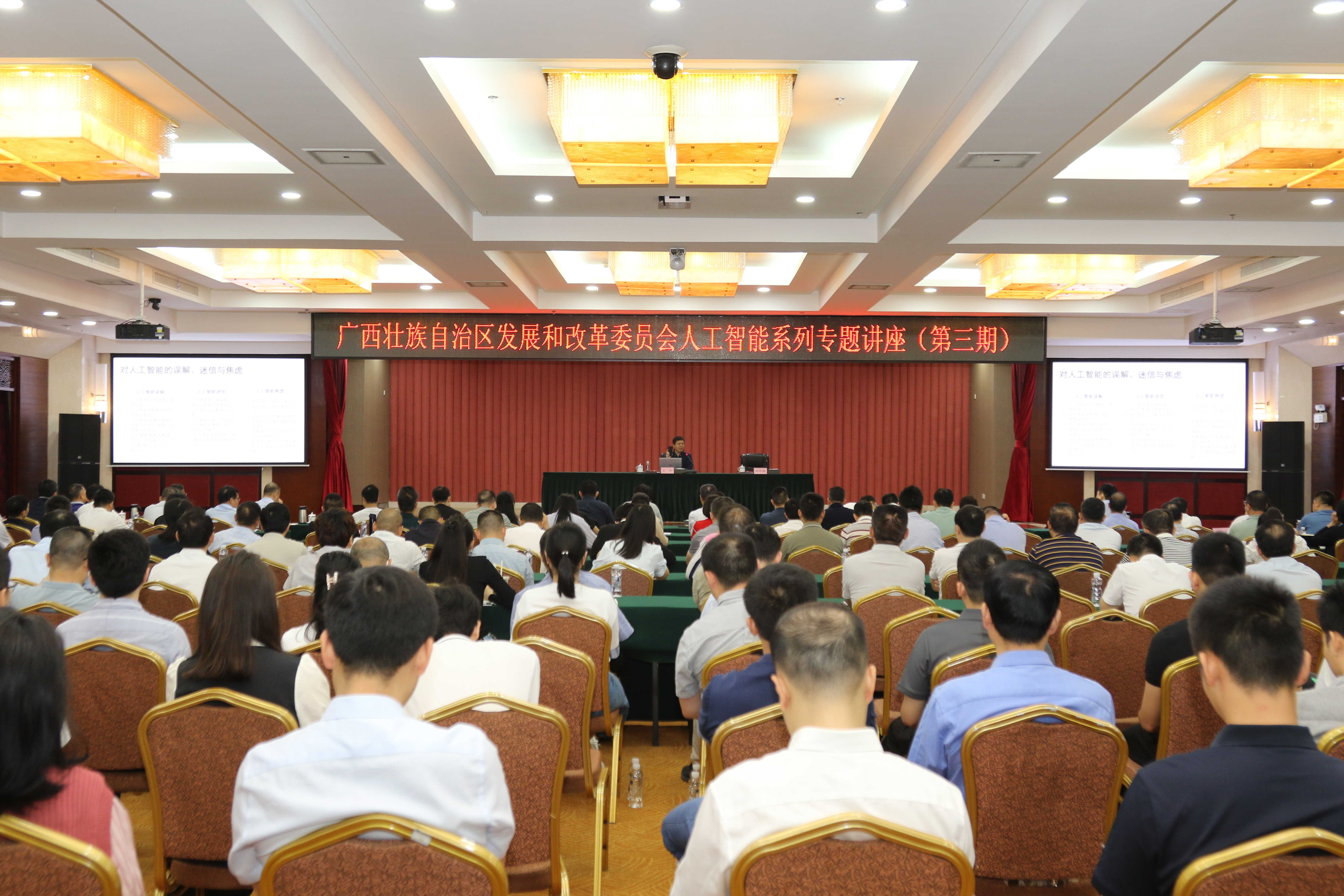 2025年4月25日,自治区发展改革委举办第三期人工智能系列专题讲座,邀请清华大学信息国家研究中心王东教授、清华大学信息技术研究院郑理博士分别就“人工智能的基础素养与未来方向”“全球产业链大模型与数智基座”作专题授课,自治区发展改革委相关负责同志,委机关,自治区军融办、能源局,委属单位全体干部职工,自治区粮食和物资储备局、生态移民中心人员参加。