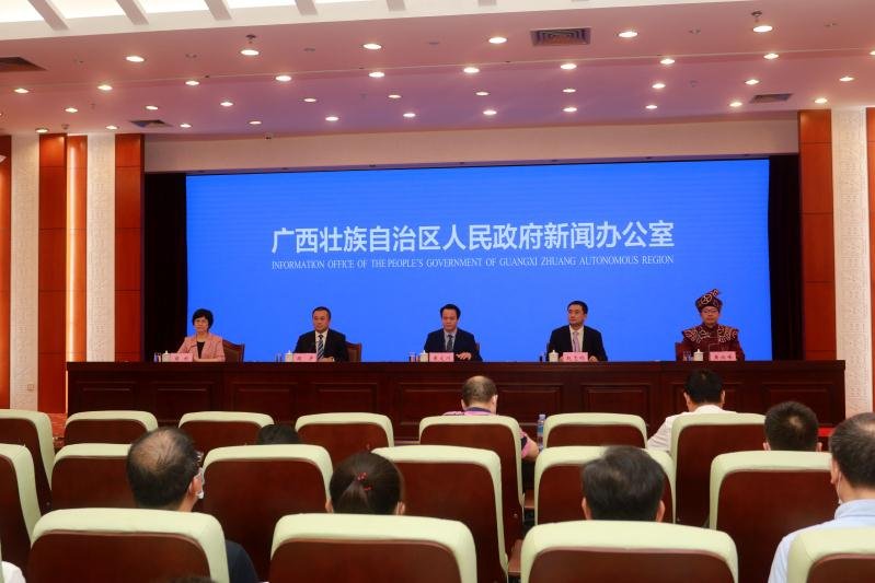 2020年6月29日下午,自治区政府新闻办在南宁举行广西发展壮大县域经济新闻发布会。自治区发展改革委党组成员、副主任黄文川,玉林市委常委、北流市委书记赵志刚,阳朔县县长周彦,环江毛南族自治县县长黄炳峰介绍情况并答记者问。发布会由自治区政府新闻办副主任薛彬主持。
