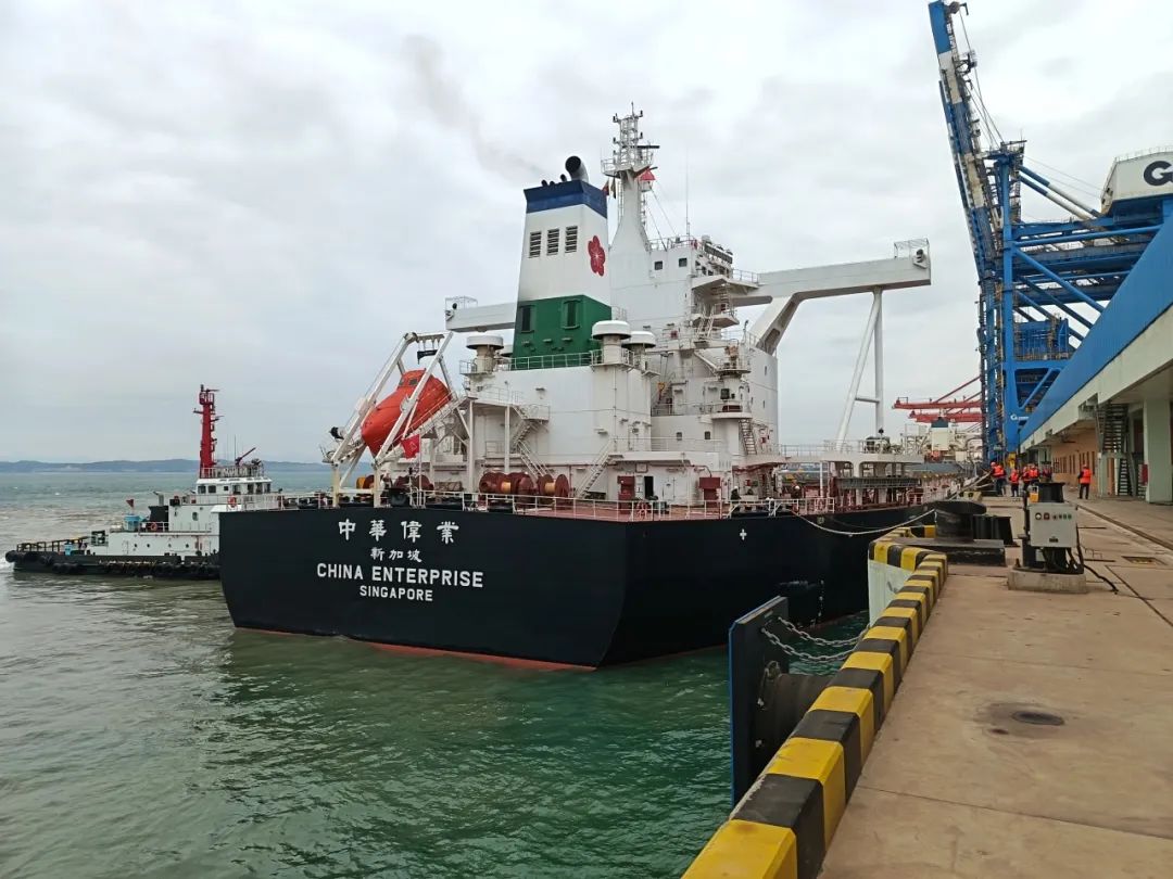 “中华伟业”轮顺利靠泊赤沙作业区2号泊位。
