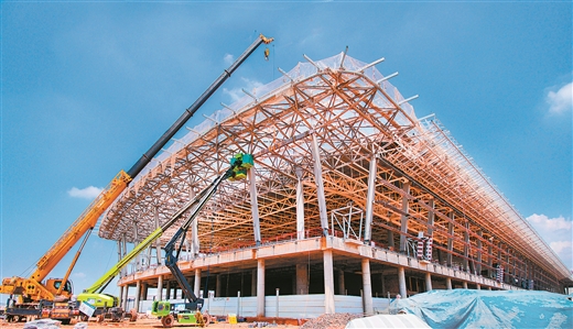 7月5日,在南宁吴圩国际机场T3航站楼项目现场,混凝土搅拌车、工程车往来穿梭,各作业面紧张施工,一派繁忙景象。目前,该项目钢结构主体顺利完工,已全面转入金属屋面施工阶段。项目建成投用后,将在安全保障能力、运行通达效率和经济带动等方面实现“进阶”。