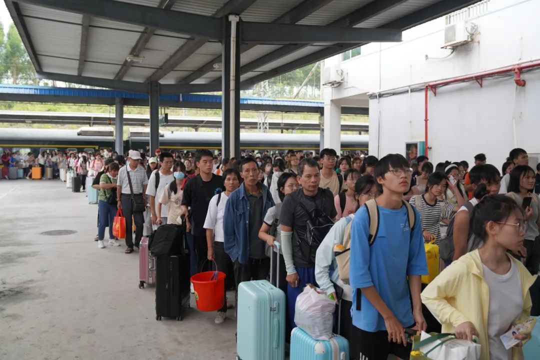 旅客在宜州站有序排队出站。(覃晓平 摄 )