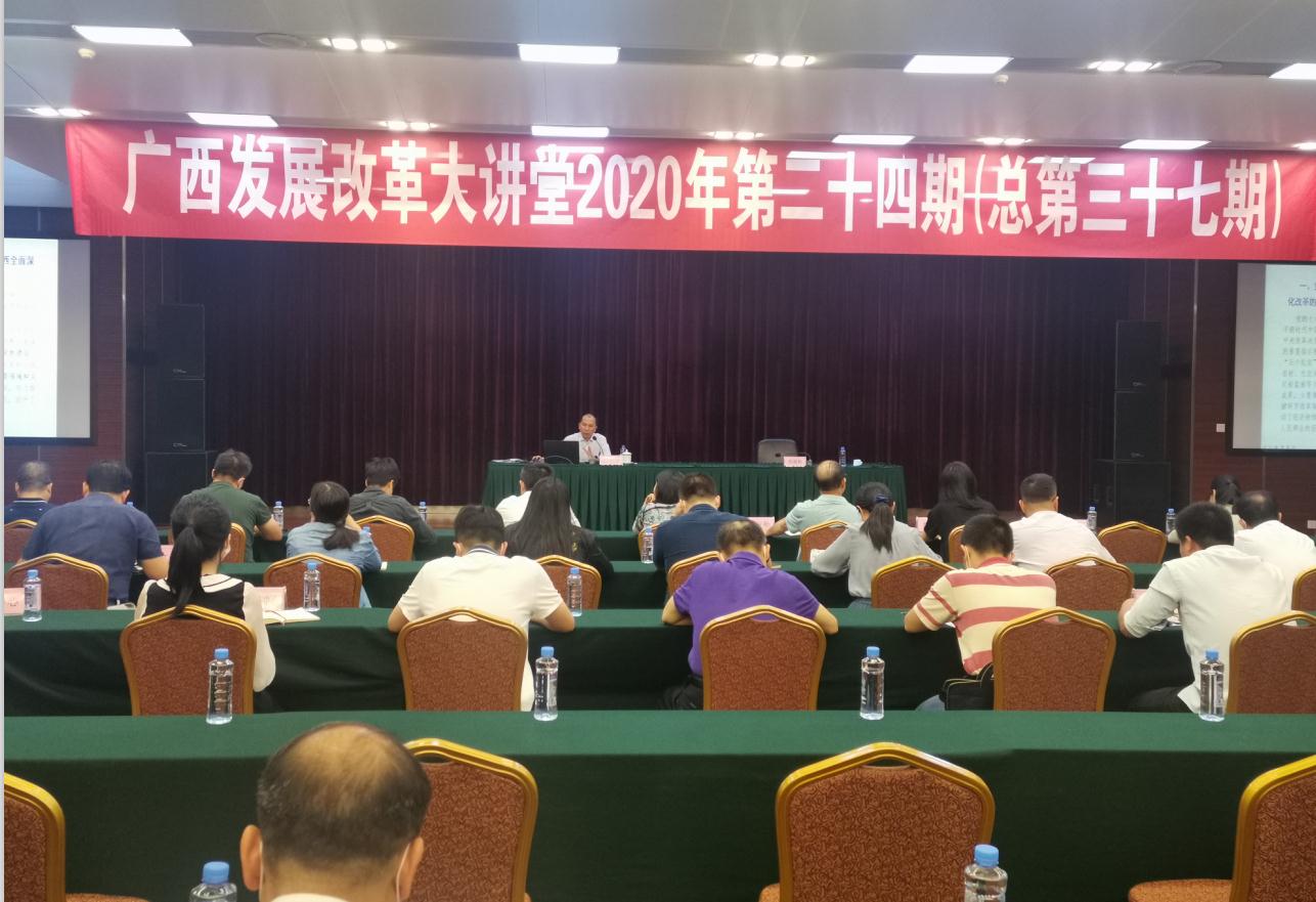 10月28日下午,自治区发展改革委在二楼多功能厅举办2020年第二十四期广西发展改革大讲堂。大讲堂邀请了自治区党委改革办综合处处长石慧君作专题报告,自治区发展改革委二级巡视员李新勤主持会议,报告以“扎实推进广西全面深化改革工作”为主题,详细阐述了党的十八届三中全会以来广西全面深化改革的主要成效。全面深化改革,给广西带来了新的机遇,也赋予了新的使命。党的十八届三中全会以来,在自治区党委的正确领导下,全区各级党组织和广大党员干部以高度的政治自觉和改革热情,认真学习领会全会精神,坚决贯彻落实中央决策部署,加强总体谋划,建立健全改革工作机制,采取有力措施,推动全面深化改革工作高效有序开展。(文、图/闫志浩)