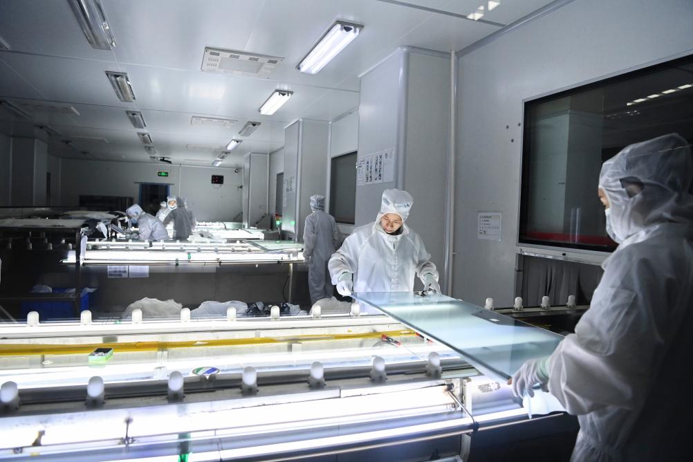 在位于广西北海市铁山港(临海)工业区内的一家玻璃生产企业,工作人员对玻璃半成品进行加工处理(2025年3月摄)。新华社记者 曹祎铭 摄