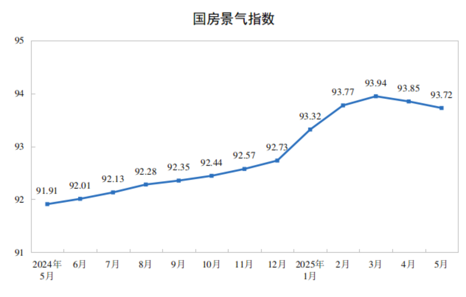 5月份,房地产开发景气指数(简称“国房景气指数”)为93.72。