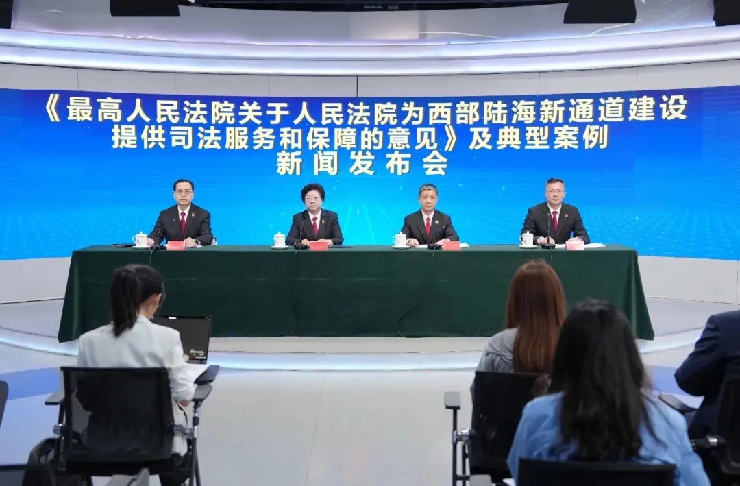 2025年4月28日下午,最高人民法院发布《最高人民法院关于人民法院为西部陆海新通道建设提供司法服务和保障的意见》、人民法院服务西部陆海新通道建设典型案例,并回答记者提问。最高人民法院审判委员会副部级专职委员王淑梅、重庆市高级人民法院院长李永利及最高人民法院民四庭副庭长王海峰出席发布会。发布会由最高人民法院新闻局副局长姬忠彪主持。发布会上,最高人民法院审判委员会副部级专职委员王淑梅发布了《最高人民法院关于人民法院为西部陆海新通道建设提供司法服务和保障的意见》。