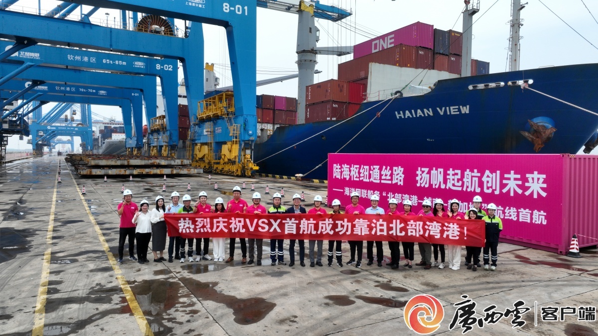 该航线由海洋网联船务运营,挂靠港顺序为“钦州港—海防港—盖梅港—新加坡—钦州港”,实现周班运行。航线主要出口货物有白卡纸、汽车零部件、玻璃、胶合板等;进口货物为氧化锌、冻海鲜、菜籽粕等。作为北部湾港织密国际航线网络的重要一环,该航线实现了与越南海防港、盖梅港的高效连接。同时,通过北部湾港海铁联运体系,西部腹地货物可经钦州港快速集港,再通过该航线直达新加坡港口中转,进而辐射至印度、欧美等目标市场,大幅提升跨境物流效率,降低企业综合成本,为区域外贸企业搭建起一条便捷、稳定的“海上高速路”。