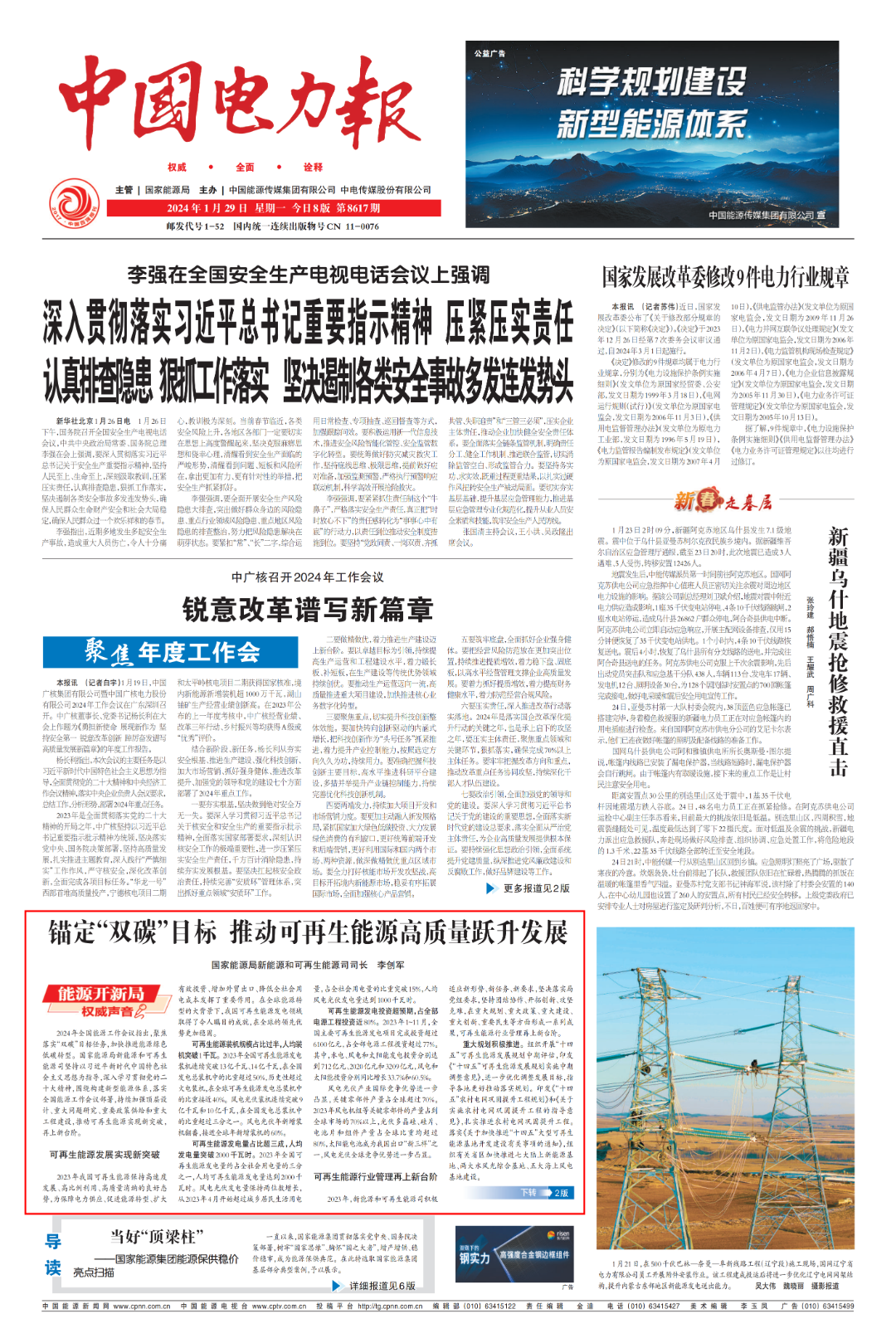 2024年是实现“十四五”规划目标任务的关键一年。随着市场竞争更加充分、技术不断进步,特别是党中央高度重视,新能源和可再生能源将继续保持高速发展态势。新的一年,要按照稳中求进、以进促稳、先立后破的工作总基调,坚持陆海并进、集散并举、多能互补、融合发展,持续推进可再生能源高质量跃升发展。
