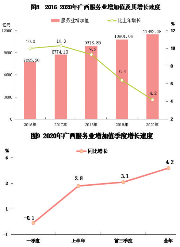 [7]规模以上服务业统计范围包括:年营业收入2000万元及以上的交通运输、仓储和邮政业,信息传输、软件和信息技术服务业,水利、环境和公共设施管理业,卫生行业法人单位;年营业收入1000万元及以上的房地产业(不含房地产开发经营),租赁和商务服务业,科学研究和技术服务业,教育行业法人单位;以及年营业收入500万元及以上的居民服务、修理和其他服务业,文化、体育和娱乐业,社会工作行业法人单位。