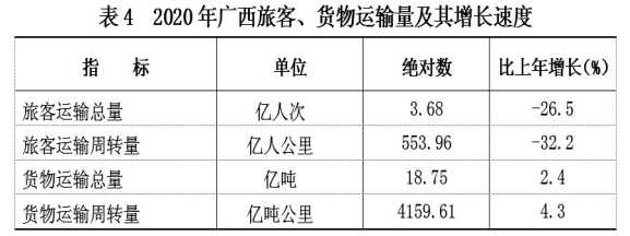 全年全区旅客运输总量3.68亿人次,比上年下降26.5%。旅客运输周转量553.96亿人公里,下降32.2%。