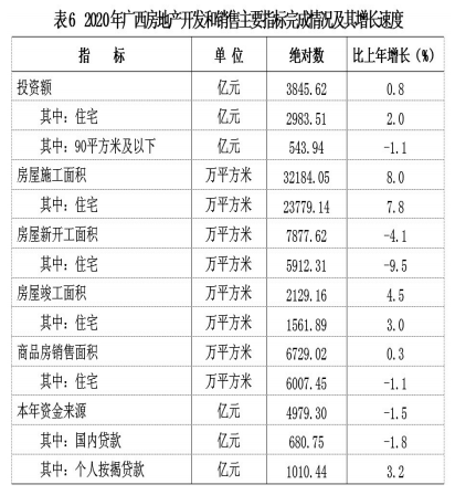 全年全区房地产开发投资3845.62亿元,比上年增长0.8%。其中住宅投资2983.51亿元,增长2.0%;办公楼投资71.39亿元,下降32.2%;商业营业用房投资287.59亿元,下降10.7%。商品房销售面积6729.02万平方米,增长0.3%,其中住宅 6007.45万平方米,下降1.1%。年末商品房待售面积1281.21万平方米,比上年末增加 12.25万平方米。其中,商品住宅待售面积668.82万平方米,减少33.63万平方米。