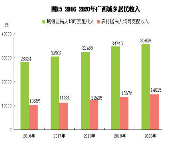 全年全区居民人均可支配收入24562元,比上年名义增长5.3%,扣除价格因素,实际增长2.4%。全区居民人均可支配收入中位数[13]19823元,名义增长3.9%。按常住地分,城镇居民人均可支配收入35859元,比上年名义增长3.2%,扣除价格因素,实际增长0.7%。城镇居民人均可支配收入中位数32995元,增长1.9%。农村居民人均可支配收入14815元,比上年名义增长8.3%,扣除价格因素,实际增长4.6%。农村居民人均可支配收入中位数13523元,增长7.5%。城乡居民人均可支配收入比值为2.42,比上年缩小0.12。