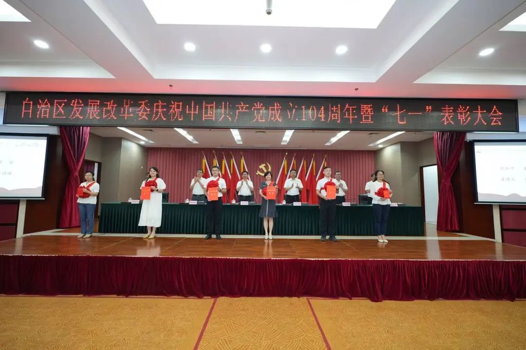 6月30日,自治区发展改革委召开庆祝中国共产党成立104周年暨“七一”表彰大会,并为“光荣在党50年”的老党员代表颁发纪念章,为“两优一先”等先进集体和优秀个人代表颁奖。这是自治区发展改革委庆祝党的104周年华诞的一项重要活动,旨在大力弘扬先进典型的优秀品格和担当精神,激励教育引导全体党员干部牢记初心使命,弘扬伟大建党精神,以先进典型为榜样,充分发挥党组织战斗堡垒和党员先锋模范作用,为推进发展改革事业、奋力谱写中国式现代化广西篇章积极贡献力量!