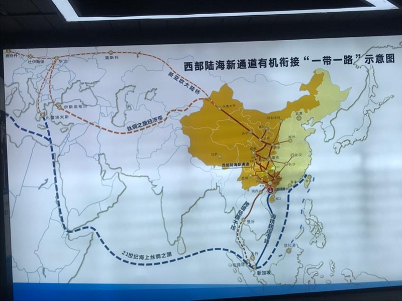 西部陆海新通道有机衔接“一带一路”示意图。