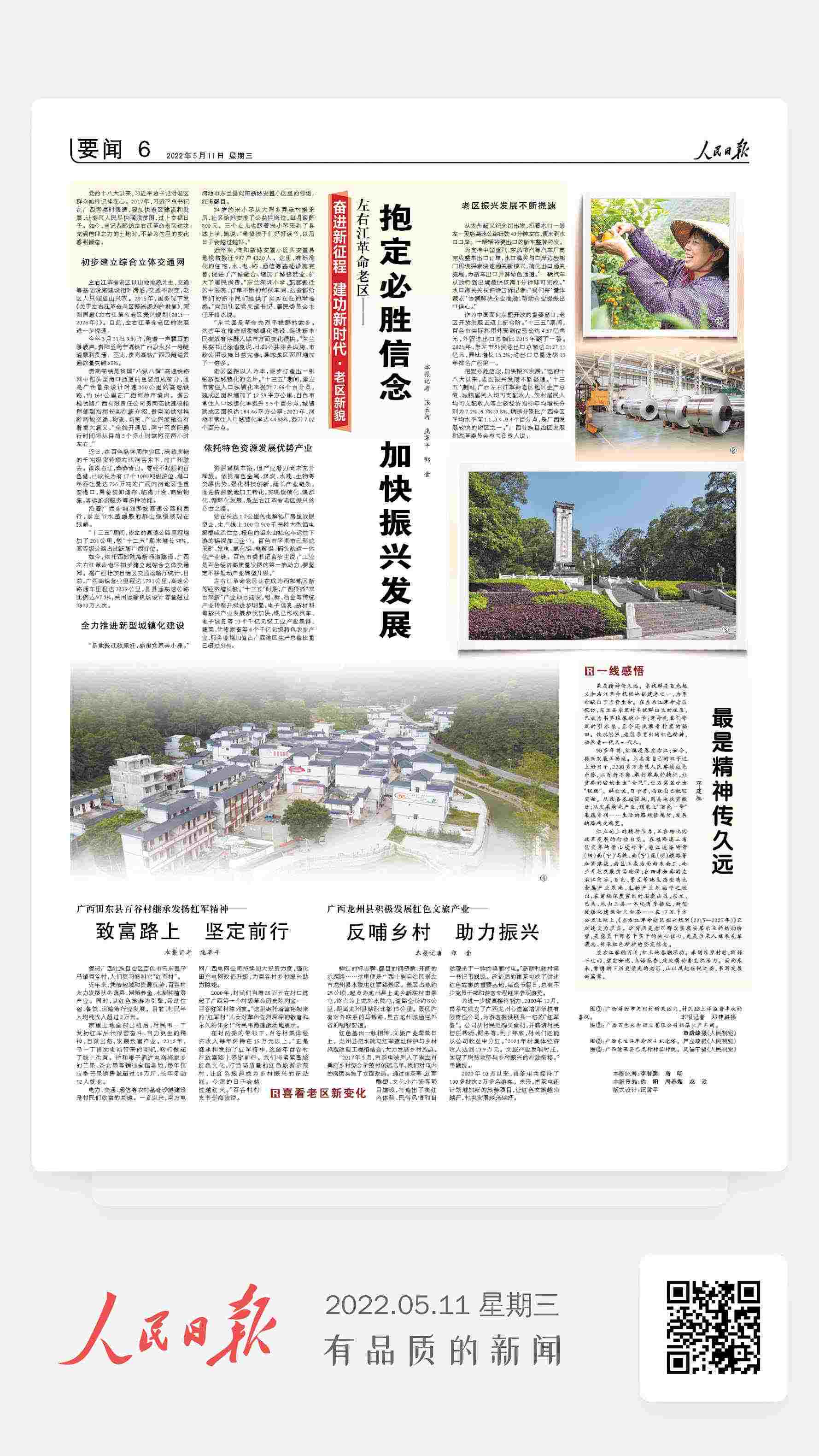 抱定必胜信念,加快振兴发展。“党的十八大以来,老区振兴发展不断提速。‘十三五’期间,广西左右江革命老区地区生产总值、城镇居民人均可支配收入、农村居民人均可支配收入等主要经济指标年均增长分别为7.2%、6.7%、9.8%,增速分别比广西全区平均水平高1.1、0.4、0.4个百分点,是广西发展较快的地区之一。”广西壮族自治区发展和改革委员会有关负责人说。