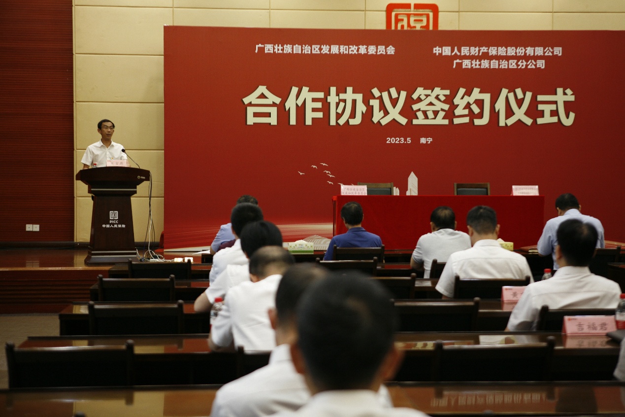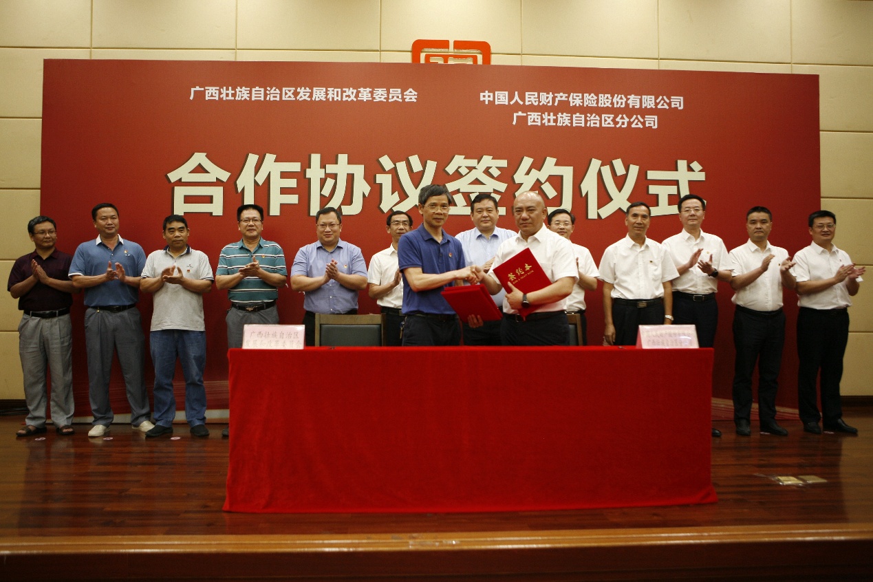 协议由自治区发展改革委价格成本调查监审处处长韦登汉、中国人保财险广西分公司副总经理田劲松代表签约。