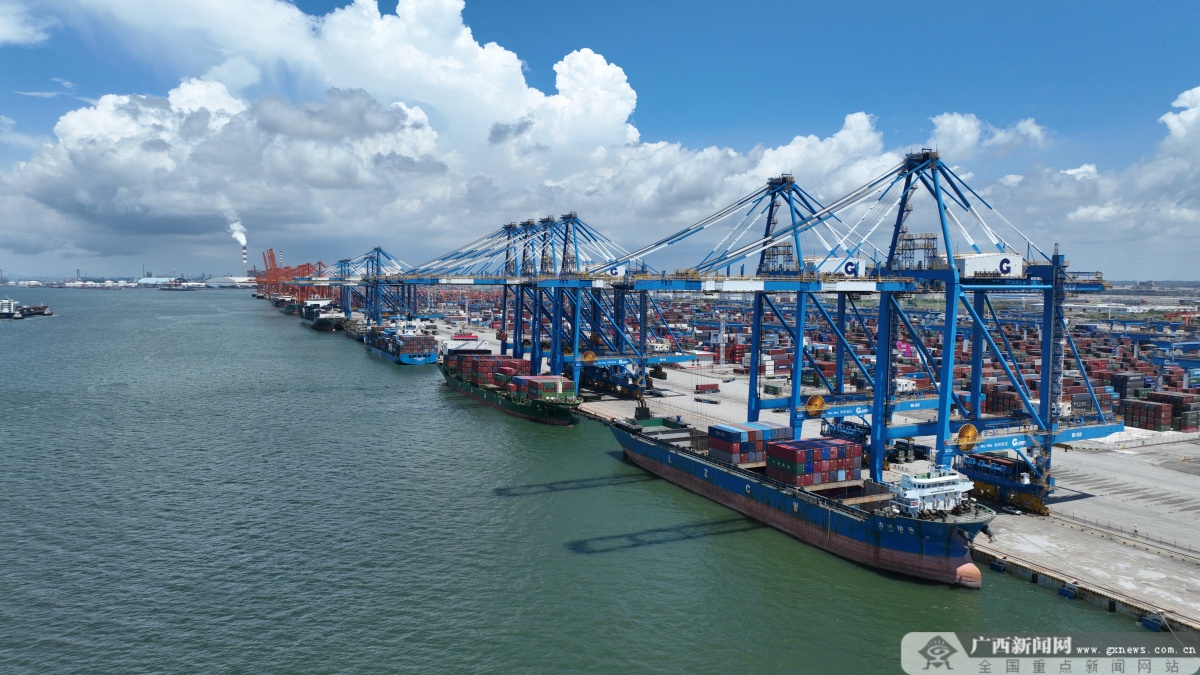 北部湾港国际门户枢纽功能加速显现。我区着力加强港航基础设施建设,钦州港20万吨级自动化集装箱码头、防城港20万吨级散货码头、北海港邮轮母港等重大项目建成使用,港口通过能力不断提高。目前,北部湾港共开通集装箱航线91条,实现东盟国家主要港口全覆盖,集装箱吞吐量从2019年的382万标箱增长到2024年的902万标箱,年均增长18.7%。今年1—7月,集装箱吞吐量完成555万标箱,稳居全国前十,年内有望实现“千万标箱大港”目标。
