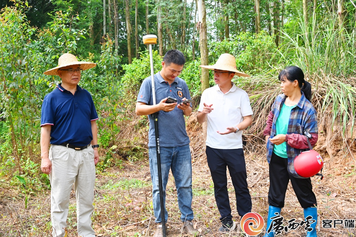 “以这个标志为界,这边是我家的地,可以从这个点开始量……”7月10日,家住贵港市港南区八塘街道岑西村的姜育娇给测绘员指出地界。当天,港南区滨江产业园(三期)项目八塘片区征拆工作组岑西村包村工作小组成员带领测绘员来勘测土地,这里规划为贵港市植护元创生活用纸全产业链项目的取水泵房。