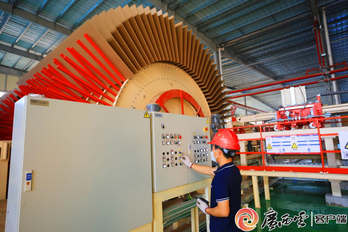 在港南区滨江产业园的广西思美木业集团有限公司生产车间内,机器轰鸣,巨大的设备在长长的生产线上高效运转;厂房干净、整洁,生产井然有序。