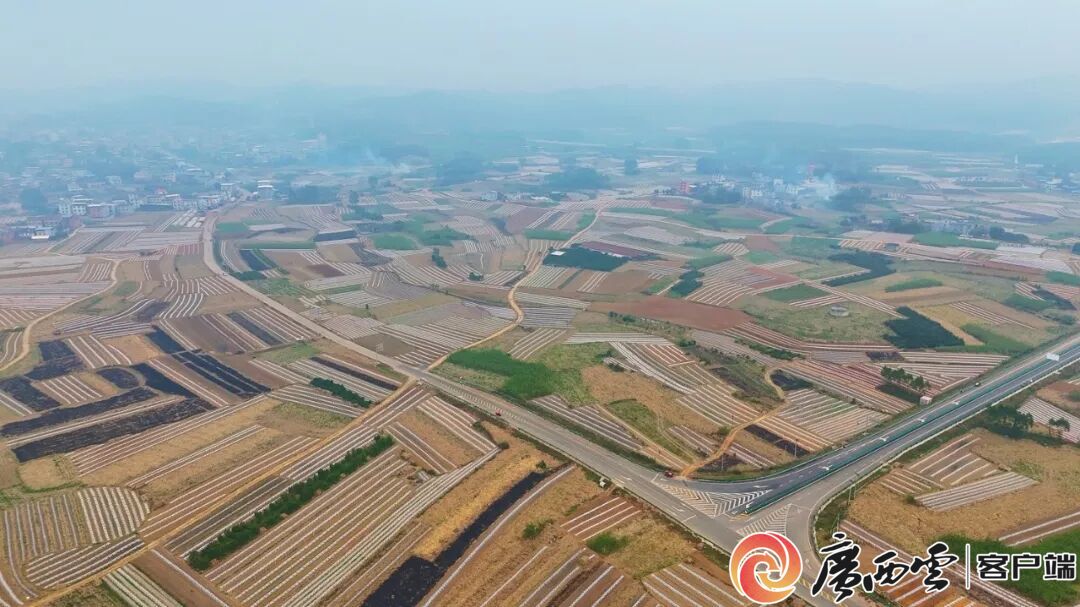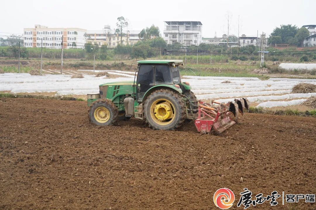 连片基地里,农事节奏紧凑有序。翻耕整地的机械轰鸣、育苗移栽的精细操作、开沟下种的娴熟动作、覆膜保墒的规范流程,勾勒出现代农业生产的生动图景。西香瓜种植进入育苗定植关键期,农户在农技人员全程指导下,优选优质嫁接苗,严格执行定植标准、精细化水肥管理与绿色病虫害防控,以标准化种植提升瓜果品质与产量。甘蔗种植区里,村民抢抓适宜墒情,同步推进新植蔗种植与宿根蔗管护,大力推广桂糖44、桂糖42 、壮糖6等高糖、高产品种,机械化作业全面普及,大幅提升种植效率与耕作质量。水稻、玉米种植区同步推进育秧、整地、播种,农户应时而动、科学种植,确保应种尽种、种足种好、一季定全年。