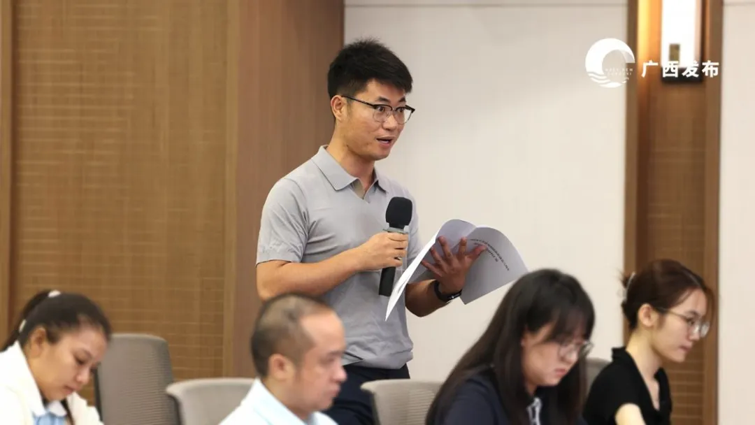 出席今天发布会的还有:自治区交通运输厅党组成员、副厅长,新闻发言人黄永忠先生;自治区商务厅党组成员、副厅长刘祥先生;自治区园区办党组成员、副主任,新闻发言人王宗文先生;中国人民银行广西壮族自治区分行党委委员、副行长谢艳女士;广西北部湾国际港务集团副总经理,新闻发言人周延先生。