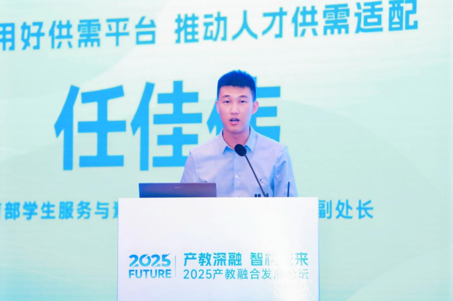 教育部学生服务与素质发展中心招生服务处副处长任佳伟作“建好用好供需平台 推动人才供需适配”主题演讲。任佳伟系统介绍了当前国家人才供需对接大数据平台的建设情况,并详细阐述了供需平台的作用与应用场景。