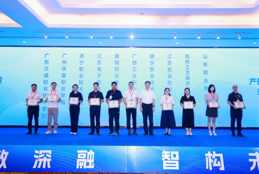 论坛活动仪式环节,中心向浙江广厦建设职业技术学院、济宁职业技术学院等17所院校颁发了产教融合专业合作建设试点单位证书。