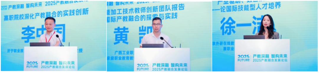 主题分享环节,济宁职业学院党委副书记、院长,二级教授李中国围绕“高职院校深化产教融合的实践创新”进行了分享。广西工业职业技术学院国家级教学创新团队主持人黄凯以“食品智能加工技术教师创新团队报告——国际产教融合的探索与实践”为题进行了演讲。北京外研在线数字科技有限公司首席内容官兼职业教育事业部总经理徐一洁以“产业驱动、数智赋能——论国际技能型人才培养”为题进行了发言。