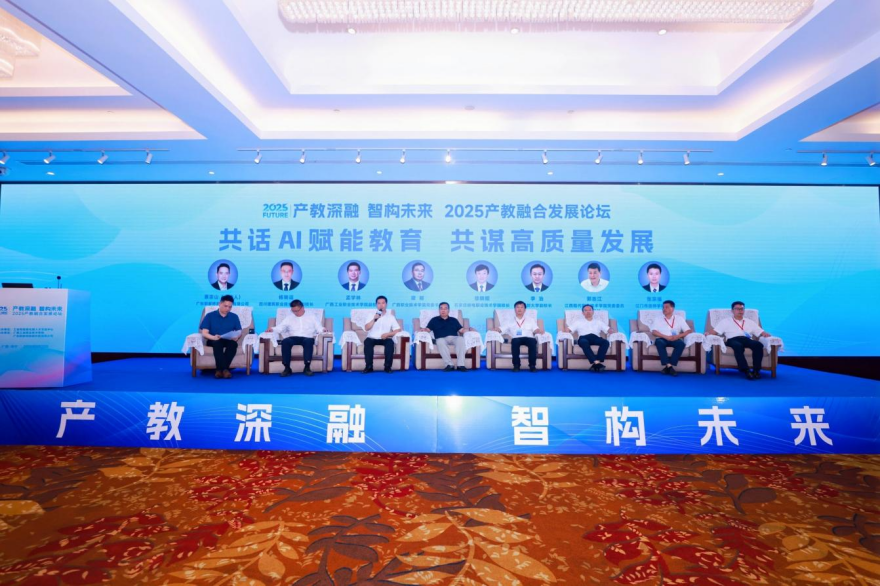 圆桌论坛环节以“共话AI赋能教育,共谋高质量发展”为主题,邀请广西职业技术学院党委书记梁裕、石家庄邮电职业技术学院校长徐晓昭、广西工业职业技术学院副校长孟学林、开封大学副校长李治、四川建筑职业技术学院副校长杨转运、江西现代职业技术学院副校长郭志江、江门市技师学院校长张宗福7位校长担任嘉宾,进行了深度交流,以真知灼见绘制人工智能时代产教融合的“未来路线图”。