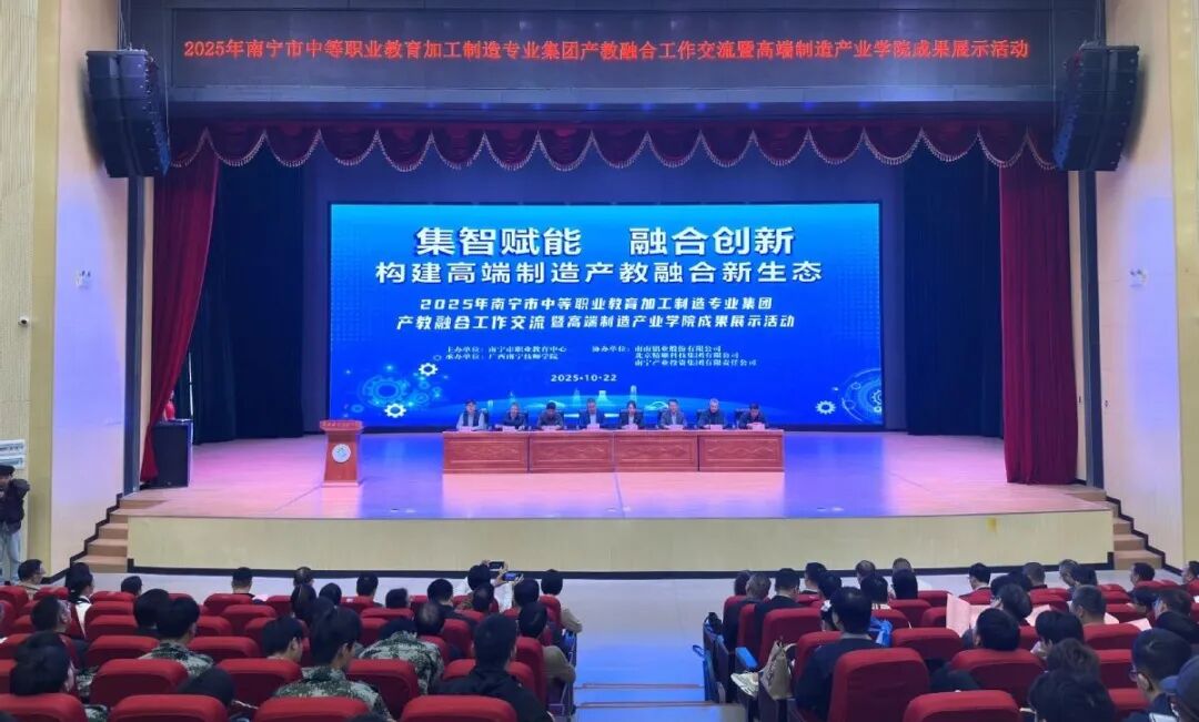 10月22日,由南宁市职业教育中心主办、广西南宁技师学院承办的2025年南宁市中等职业教育加工制造专业集团产教融合工作交流暨高端制造产业学院成果展示活动在广西南宁技师学院举行。活动以“集智赋能 融合创新 构建高端制造产教融合新生态”为主题,汇聚了区内外中高等职业院校、行业企业代表、专家学者及师生代表等近千人,共同探讨人工智能时代职业教育创新发展路径。