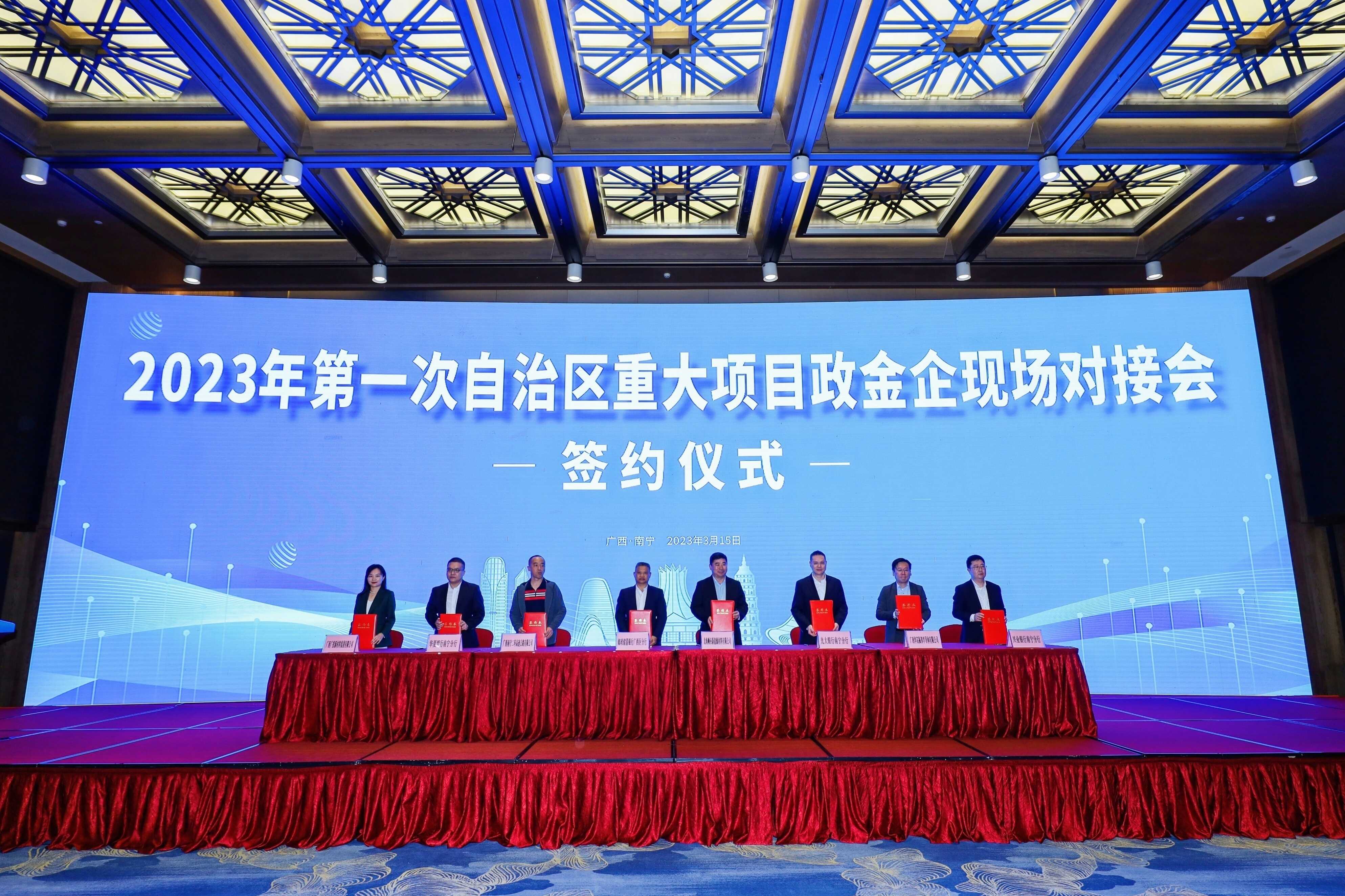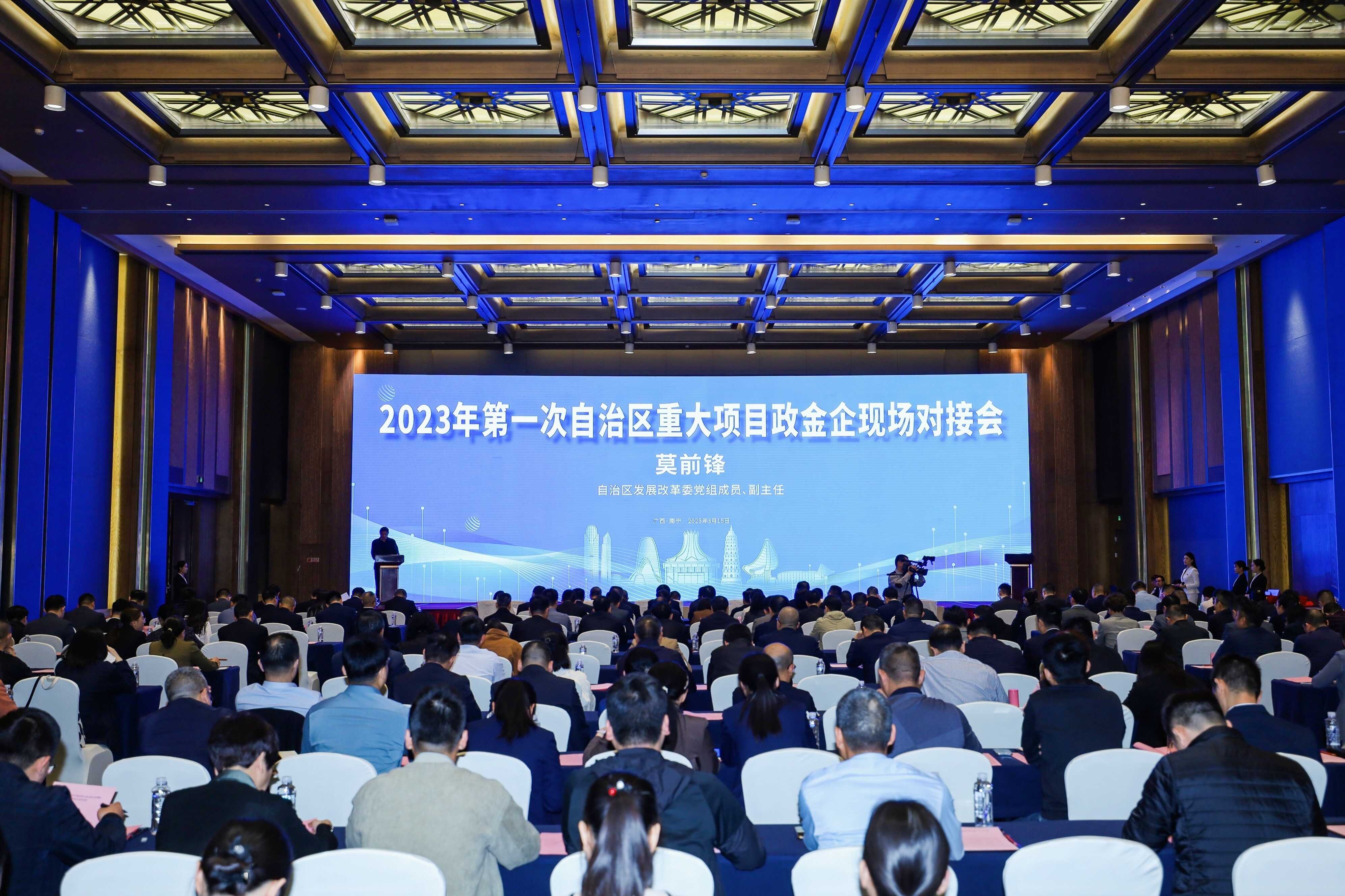 2023年3月15日,为深入贯彻落实党的二十大和全国两会精神,全力“坚定信心稳增长 更好统筹开新局”,以制造业为重点,强化自治区重大项目金融服务力度,自治区发展改革委联合地方金融监管局举办2023年第一次自治区重大项目政金企现场对接会。会议邀请了国家开发银行广西分行、中国进出口银行广西分行、农业发展银行广西分行、工商银行广西分行、农业银行广西分行、中国银行广西分行、建设银行广西分行、国海证券股份有限公司、国富人寿保险股份有限公司、北部湾财产保险股份有限公司、南宁市小微企业融资担保有限公司等31家金融机构以及近100个重大项目业主进行现场对接洽谈。自治区发展改革委、地方金融监管局领导出席会议并讲话。