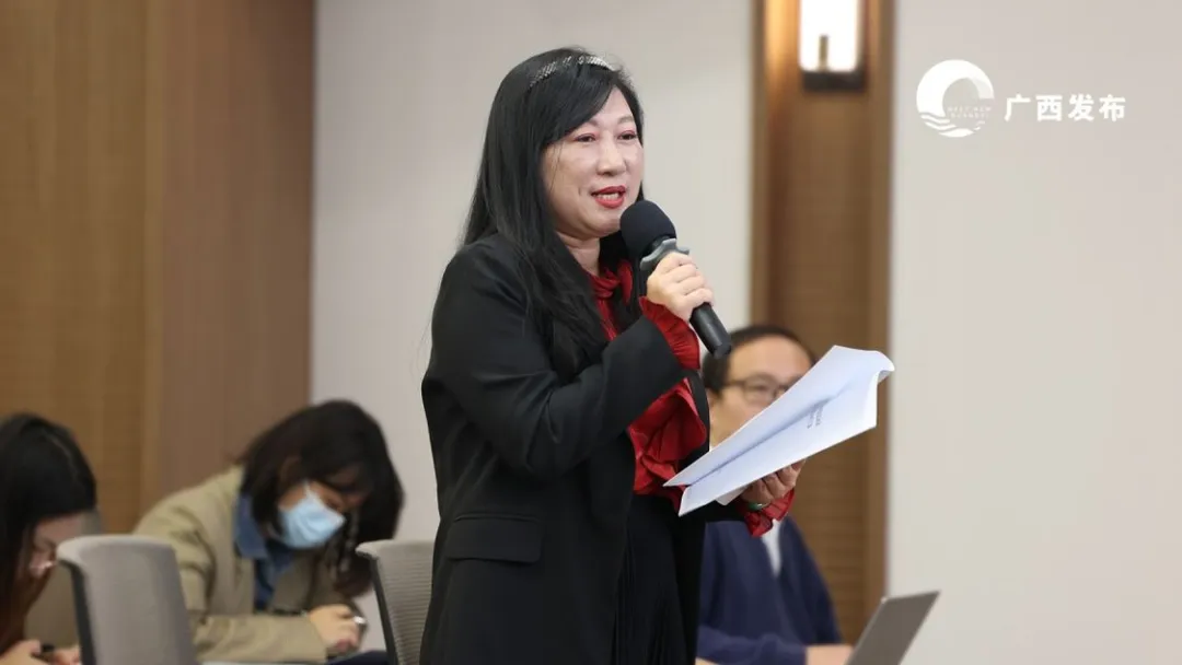 出席今天发布会的还有:自治区司法厅党委委员、副厅长张军先生;自治区商务厅党组成员,自治区打私办专职副主任傅晋明先生;自治区市场监管局党组成员、副局长、一级巡视员、新闻发言人刘军先生;自治区数据局党组成员、副局长、新闻发言人苏爱民女士;广西税务局党委委员、总经济师黄尚书先生。