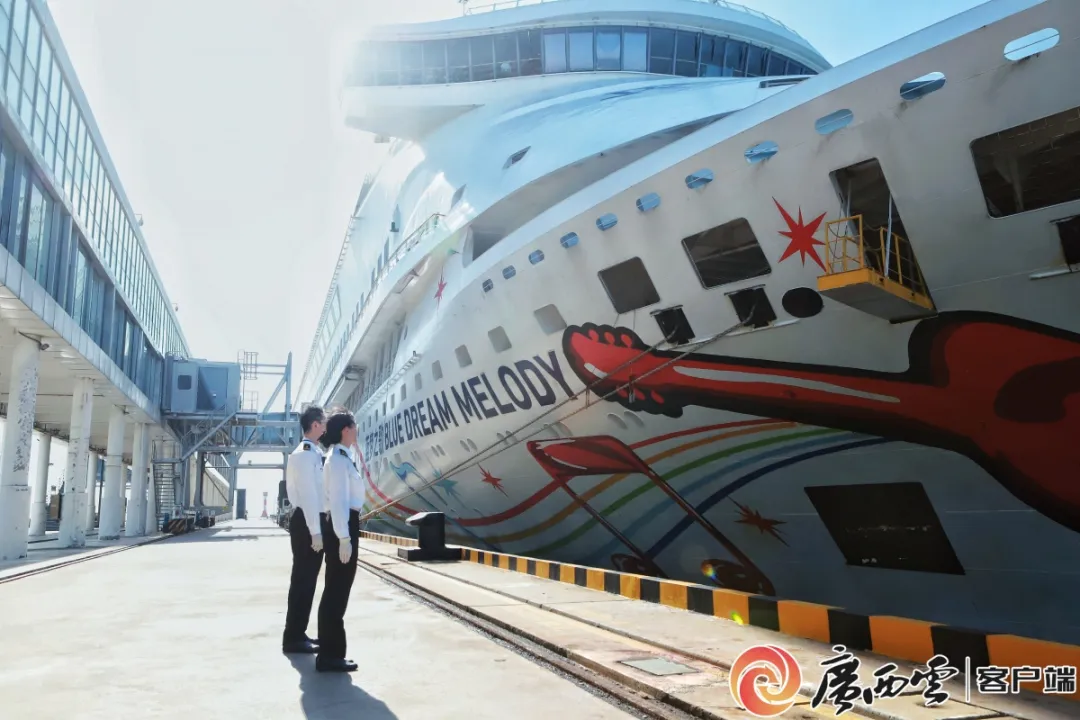 北海海关关员对进出境邮轮进行现场监管。朱恒 摄